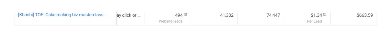 For my cake course launch, Khushi was super helpful during the entire promo period. We ran multiple campaigns and even had to completely delete one and start from scratch because I wanted to go in a different direction, which I was able to do with Khushi’s help. The course campaign performed really well and I’m very happy with the results I’ve seen.